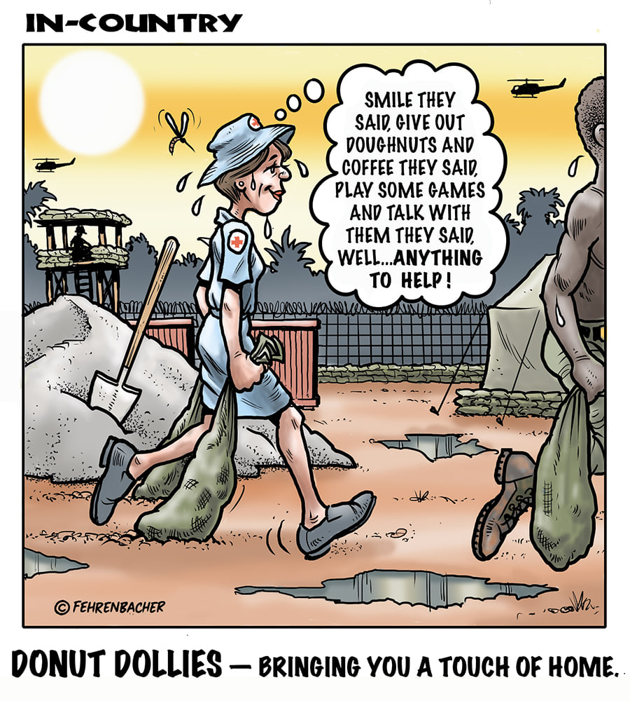 Phil enlisted in the Army in 1965 where he served for years in Vietnam. He became a graphic designer and has worked for the state of Oregon for 26 years. He retired in 2003 and started the Cartoon "In-Country". The cartoons reflect his experiences during his tour of duty in South Vietnam.